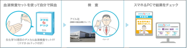 自宅で受けられる人間ドック「スマホdeドック」があります。少量の血液を送るだけで、動脈硬化や糖尿病、心筋梗塞、脳梗塞などのリスクの検査ができます。スマホdeドックは、厚生労働省から承認されたキッ…