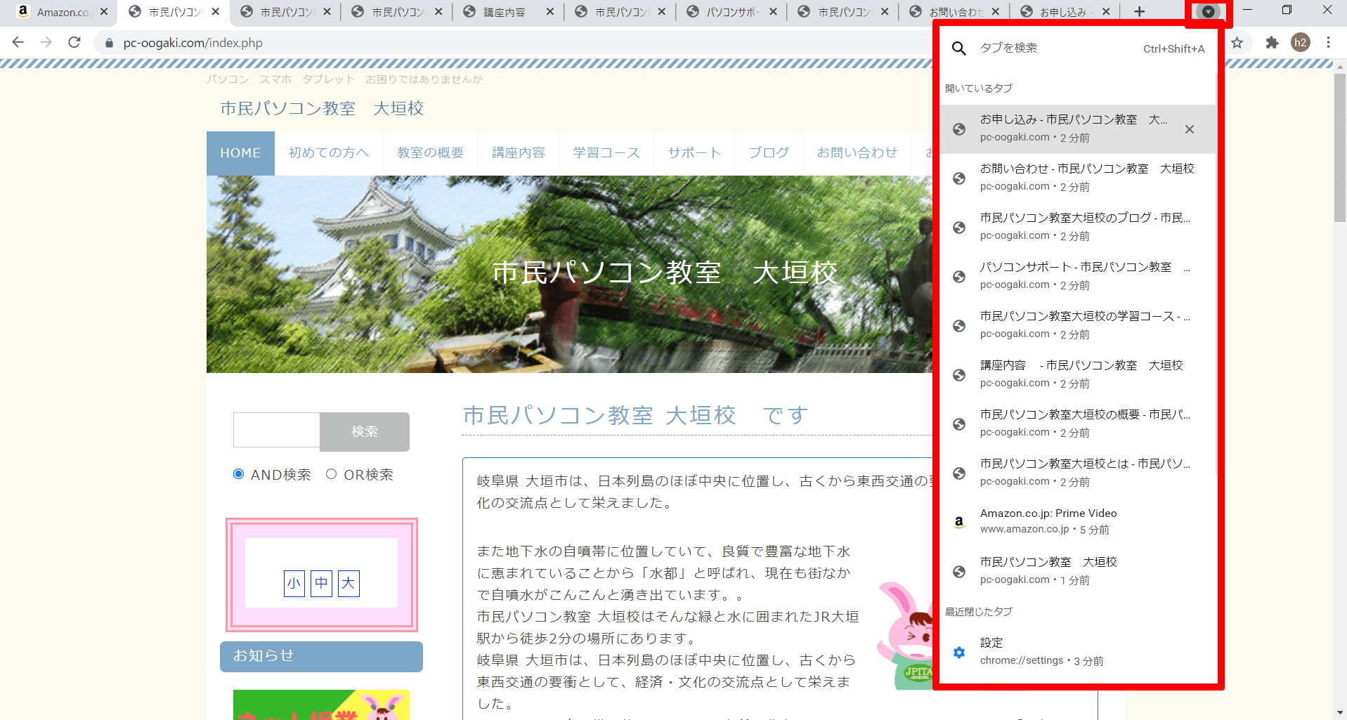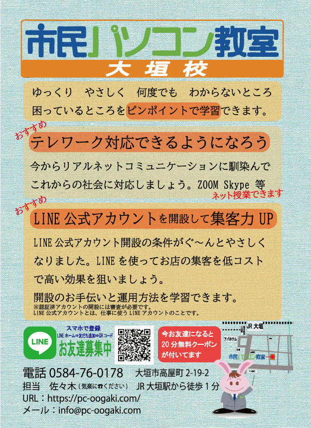 市民パソコン教室 大垣校はそんな緑と水に囲まれたJR大垣駅から徒歩2分の場所にあります。