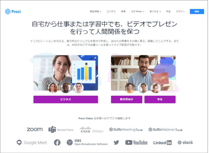 Prezi Video(プレジ ビデオ)は、オンライン会議などでプレゼンテーションを行うときに利用するアプリ(無料)です。Web カメラを通して表示される画面の中に、文字や画像、動画をリアルタイムに…